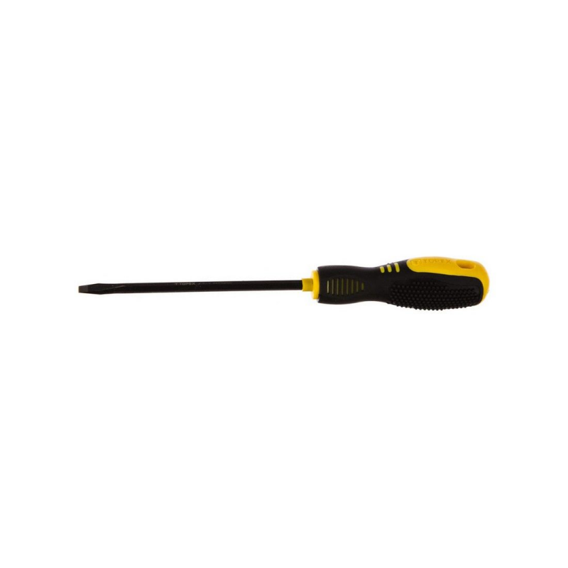 Стержень отвертки выполнен из качественной стали, что обеспечивает высокую прочность и долговечность инструмента. Размер шлица SL4 оптимален для работы с крепежами среднего размера, часто используемыми в сборке мебели и ремонте техники. Длина стержня составляет 100 мм, что делает эту отвертку универсальной для большинства стандартных задач, включая работу в труднодоступных местах.