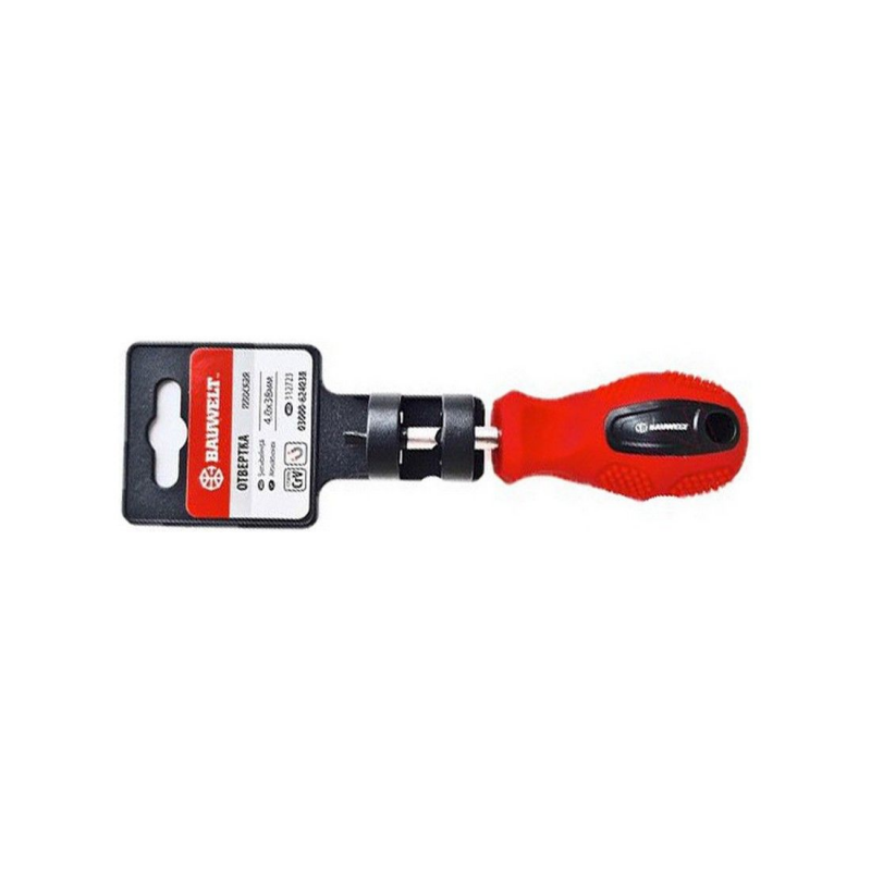 Отвертка BAUWELT SL4x38 мм — компактный инструмент для работы с крепежами типа SL (плоский шлиц), идеально подходящий для мелких и точных задач, требующих высокой точности.