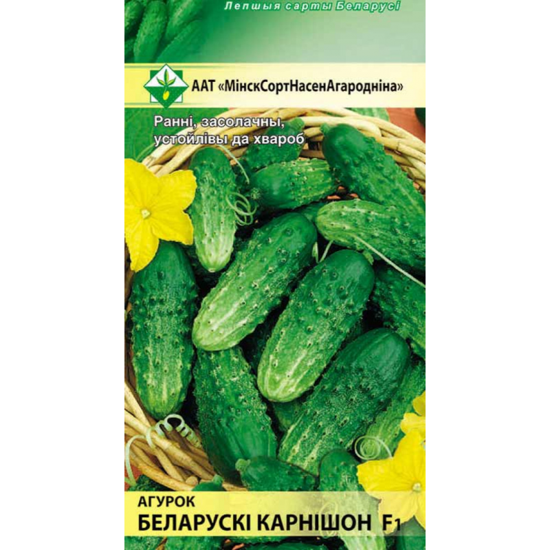 Ранний гибрид корнишонного типа белорусской селекции. Период от всходов до начала уборки 44-48 дней. Пчелоопыляемый, преимущественно с женскими цветками, урожайный. Плоды цилиндрической формы, зеленые, длиной 8-10 см, крупнобугорчатые, черношипые, с плотной мякотью, хрустящие, без горечи. Вкусовые качества в свежем, консервированном и соленом виде высокие. Обладает устойчивостью к комплексу болезней, имеет длительный период плодоношения. Качество семян проверено и соответствует Постановлению МСХиП РБ №37 от 29.10.2015г.