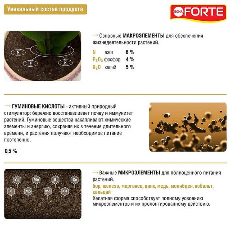Применение: идеально подходит для ухода за фикусовыми и пальмовыми растениями, помогает достичь крепкого роста и великолепного декоративного вида. Удобрение BONA FORTE является незаменимым для тех, кто хочет поддерживать здоровье своих экзотических растений.