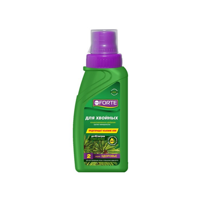 Удобрение для хвойных BONA FORTE ЗДОРОВЬЕ (285 мл) — это минеральное удобрение для хвойных растений, стимулирующее рост и корнеобразование, а также предотвращающее осыпание иголок и обеспечивающее яркий зеленый цвет хвои.