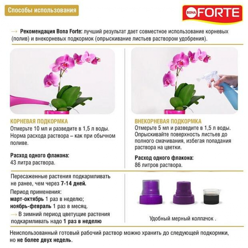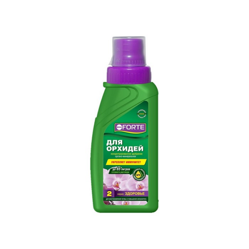 Удобрение для орхидей BONA FORTE ЗДОРОВЬЕ (285 мл) — минеральное удобрение для орхидей, стимулирующее их цветение и увеличивающее продолжительность цветения. Состав включает три основных макроэлемента: азот (N) — 4%, фосфор (P2O5) — 2,5%, калий (K2O) — 7%, а также гумат (0,5%) и девять микроэлементов, среди которых бор, железо, марганец, цинк, медь, молибден, кобальт, кальций и магний. Из них шесть микроэлементов представлены в хелатной форме для лучшей усвояемости растениями.