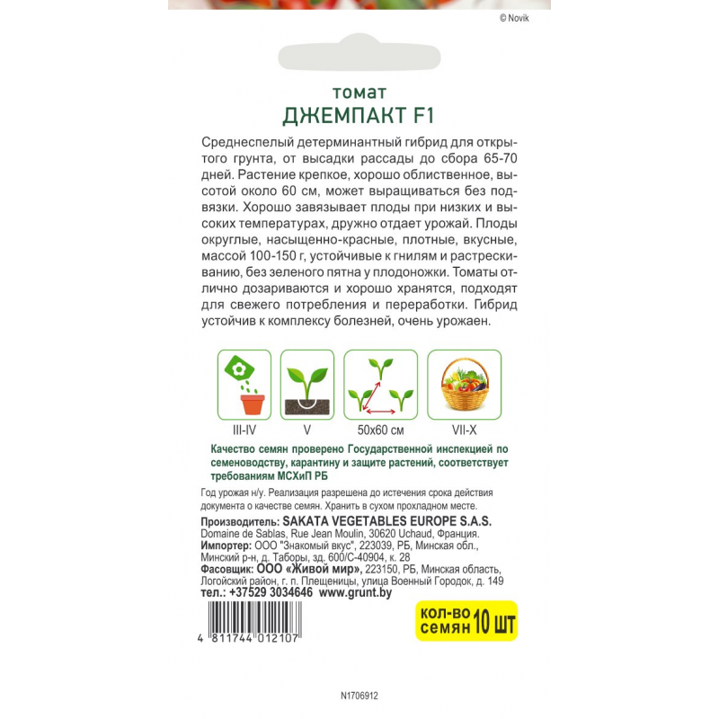 Среднеспелый детерминантный гибрид для открытого грунта, от высадки рассады до сбора 65-70 дней.