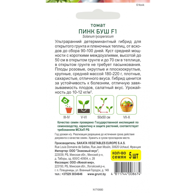 Ультраранний детерминантный гибрид для открытого грунта и пленочных теплиц, от всходов до сбора 90-100 дней.