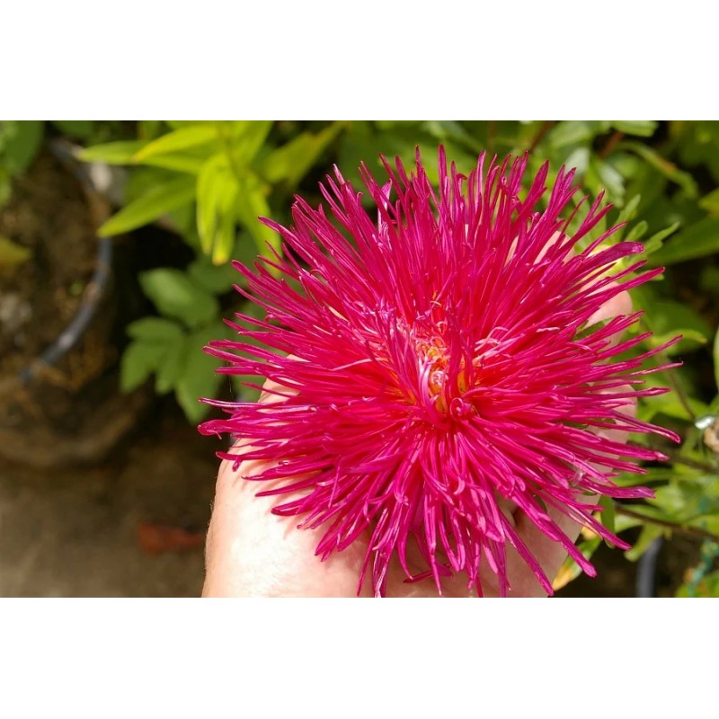 Эффектный крупноцветковый сорт астр игольчатого типа. Среднего срока цветения. Куст пирамидальный, с крепким стеблем, высотой 60-70 см. Соцветия махровые, рубиново-красные, в диаметре до 14 см. Одно растение дает 8-12 стеблей для срезки. Качество цветков и стебля прекрасно подходит для букетов. Посев на рассаду производят с конца марта до середины апреля. В открытый грунт рассаду высаживают в мае.Качество семян соответствует ГОСТу 12260-81 и Постановлению МСХП РБ от 29.10.2015г. №37.