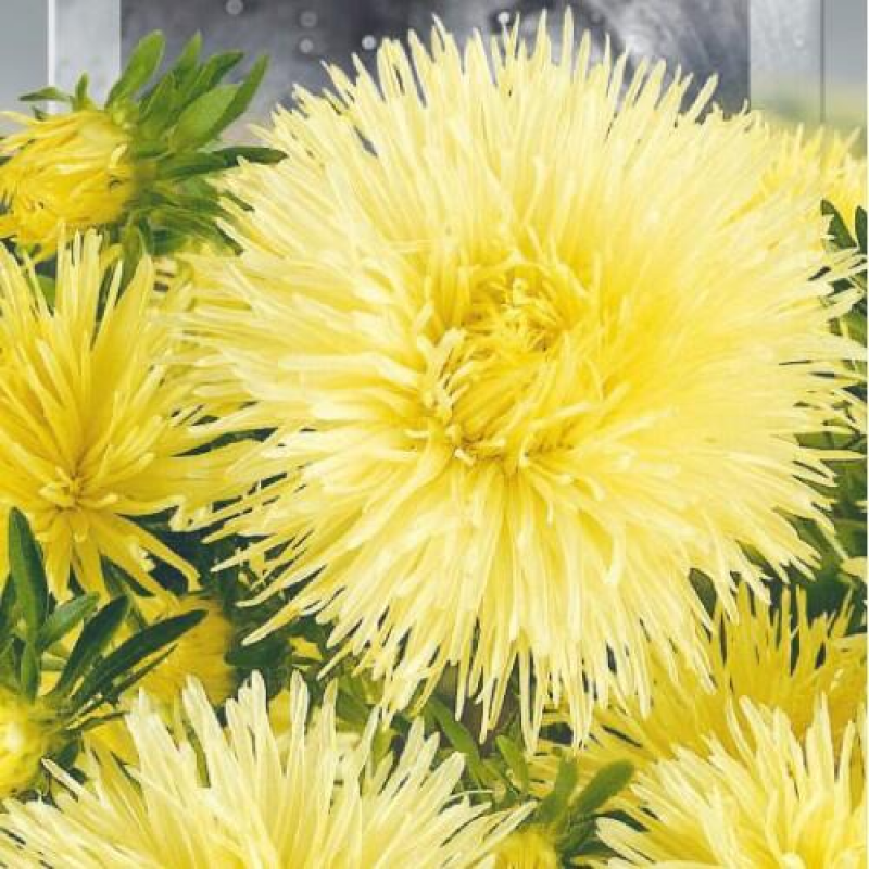 Эффектный крупноцветковый сорт астр игольчатого типа. Среднего срока цветения. Куст пирамидальный, с крепким стеблем, высотой 60-70 см. Соцветия махровые, золотисто-желтые, в диаметре до 14 см. Одно растение дает 8-12 стеблей для срезки. Качество цветков и стебля прекрасно подходит для букетов. Посев на рассаду производят с конца марта до середины апреля. В открытый грунт рассаду высаживают в мае.Качество семян соответствует ГОСТу 12260-81 и Постановлению МСХП РБ от 29.10.2015г. №37.