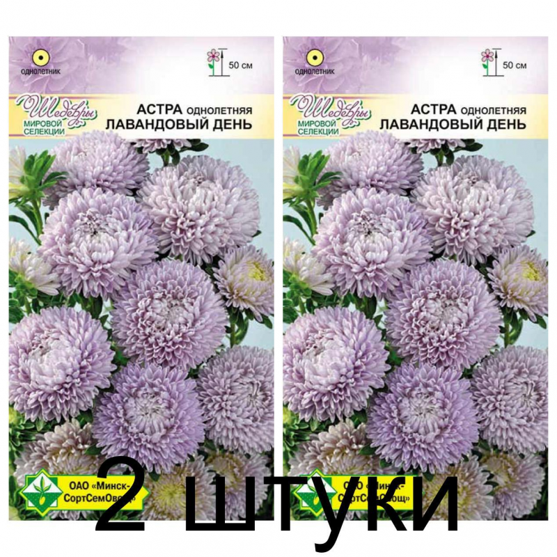 Маленькая красавица среди астр! Среднераннего срока цветения. Куст высотой около 50 см, хорошо разветвленный. Одно растение дает 10-12 стеблей. Соцветия махровые, почти сферической формы, лавандового цвета, в диаметре 5-7 см. На кусте образуется до 50 соцветий. Обильное цветение, изящные некрупные соцветия делают сорт идеальным для срезки сразу целого растения и оформления клумб.Качество семян соответствует ГОСТу 12260-81 и Постановлению МСХП РБ от 29.10.2015г. №37.