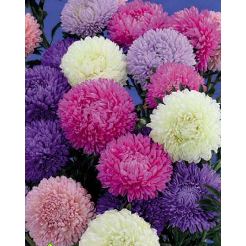 Маленькая красавица среди астр! Смесь сортов. Среднераннего срока цветения. Куст высотой около 50 см, хорошо разветвленный. Одно растение дает 10-12 стеблей. Соцветия махровые, почти сферической формы, в диаметре 5-7 см. На кусте образуется до 50 соцветий. Обильное цветение, изящные некрупные соцветия делают ее идеальной для срезки сразу целого растения и для оформления клумб.Качество семян соответствует ГОСТу 12260-81 и Постановлению МСХП РБ от 29.10.2015г. №37.