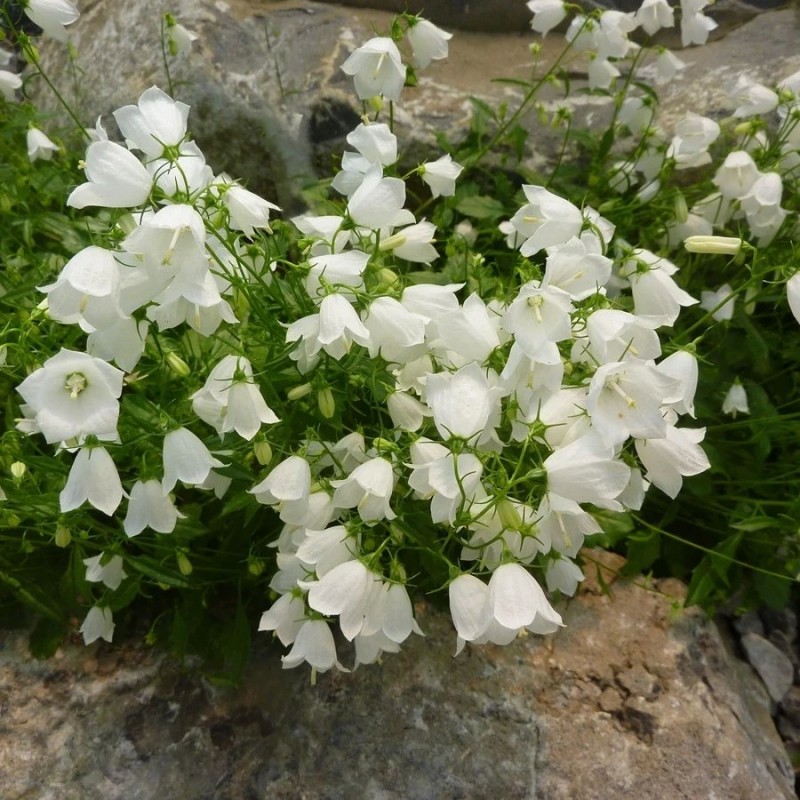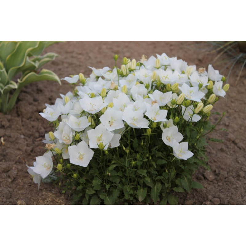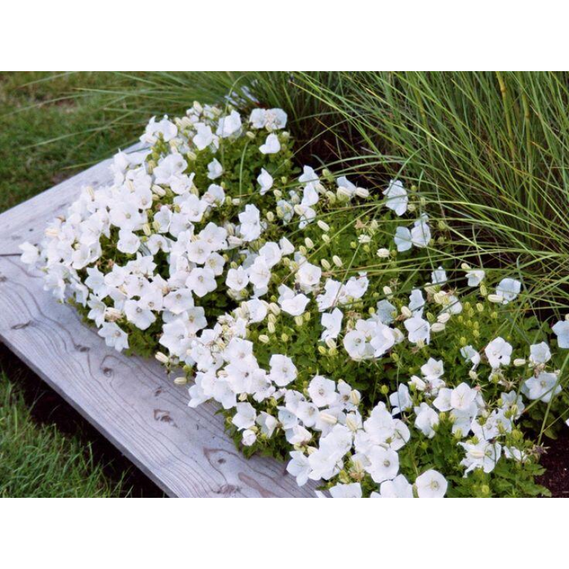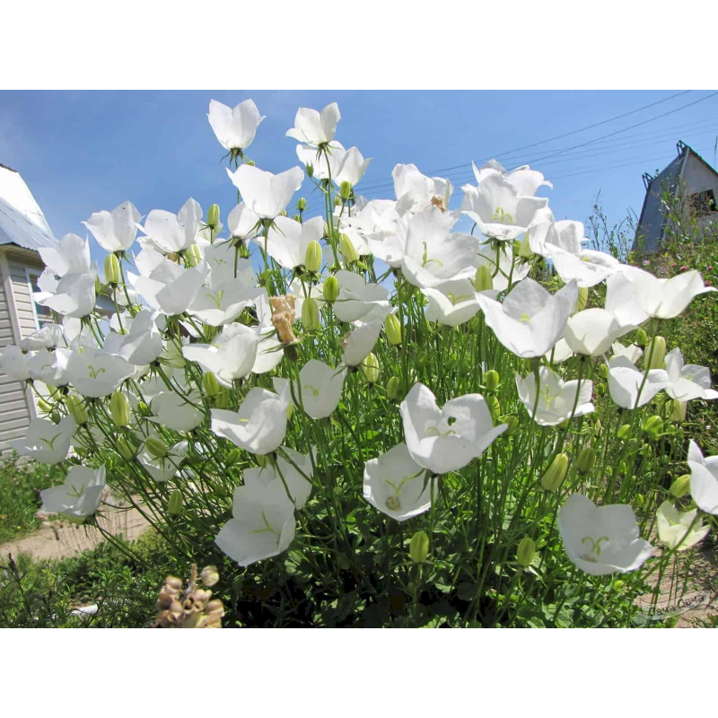 Многолетнее растение высотой около 25 см с тонкими облиственными стеблями. Цветки одиночные, ширококолокольчатые, белого цвета. Рекомендуется для рокариев, бордюров, клумб, альпийских горок. Семена высевают в конце мая - начале июня. На постоянное место высаживают в августе. Неприхотлив, переносит полутень, на одном месте растет 3-5 лет. Зимует без укрытия.Качество семян соответствует ГОСТу 12420-81 и Постановлению МСХП РБ от 29.10.2015г. №37.