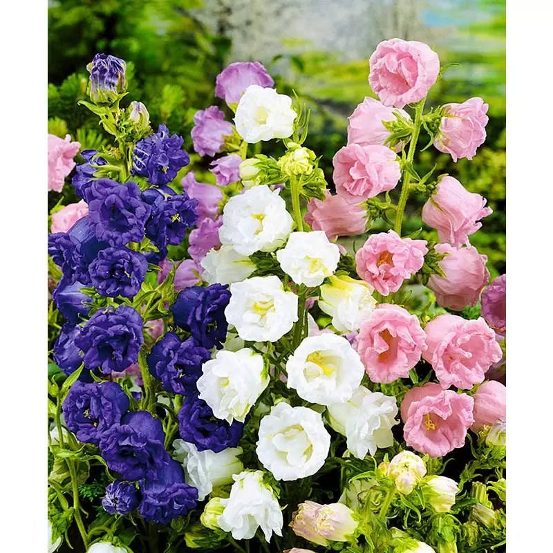 Великолепное двулетнее растение высотой около 90 см. Цветки бокальчато-колокольчатые, махровые, длиной до 6 см, образуют роскошные соцветия белой, розовой, голубой или фиолетовой окраски. Для групповых посадок и срезки в букеты. Семена высевают в конце мая - начале июня. На постоянное место пересаживают в августе. На зиму укрывают еловыми ветками, опавшими листьями или торфом.Качество семян соответствует ГОСТу 12260-81 и Постановлению МСХП РБ от 29.10.2015г. №37.