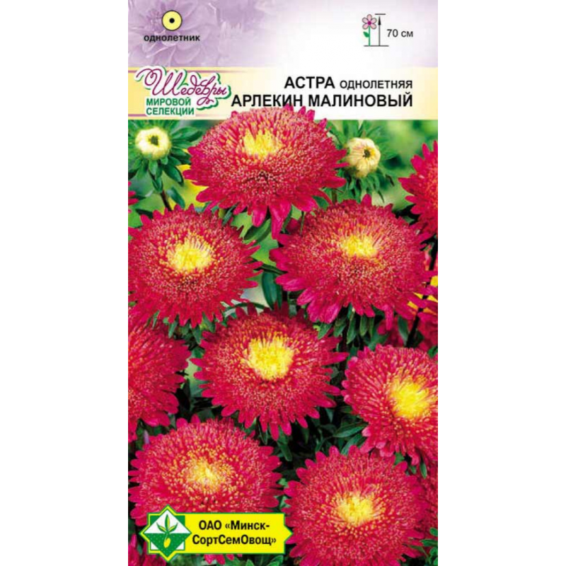 Новейший оригинальный срезочный сорт. Среднего срока цветения. Куст пирамидальный, прочный, высотой 65-70 см. Соцветия махровые, малиновые с желтоватой серединкой, в диаметре 6-8 см. Одно растение формирует 10-14 побегов, которые можно срезать у основания как один большой букет. Семена на рассаду высевают с конца марта до середины апреля (с конца апреля возможен посев непосредственно в грунт). Рассаду высаживают в мае.Качество семян соответствует ГОСТу 12260-81 и Постановлению МСХП РБ от 29.10.2015г. №37.