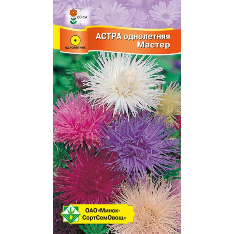 Очень распространенная и любимая садоводами крупноцветковая группа астр игольчатого типа. Смесь сортов. Среднераннего срока цветения. Куст колонновидный, высотой 60 см. Соцветия полусферические, густомахровые, в диаметре 10-12 см. Продолжительность цветения до 60 дней. Прочные, длинные стебли, изящные соцветия и превосходная их сохранность делают эти астры непревзойденными для срезки и клумб.Качество семян соответствует ГОСТу 12260-81 и Постановлению МСХП РБ от 29.10.2015г. №37.