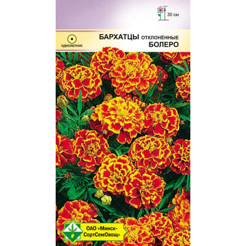 Однолетнее растение высотой до 30 см. Куст компактный, с обилием цветков. Соцветия 5-6 см в диаметре, махровые, желто-оранжево-бронзовой окраски. Хороши для клумб, балконов, в букетах. Семена высевают на рассаду в конце марта – апреле или прямо в открытый грунт в мае. Рассаду высаживают в грунт в мае, когда минует угроза заморозков. Предпочитают солнечное место, но цветут и в полутени.Качество семян соответствует ГОСТу 12260-81 и Постановлению МСХП РБ от 29.10.2015г. №37.