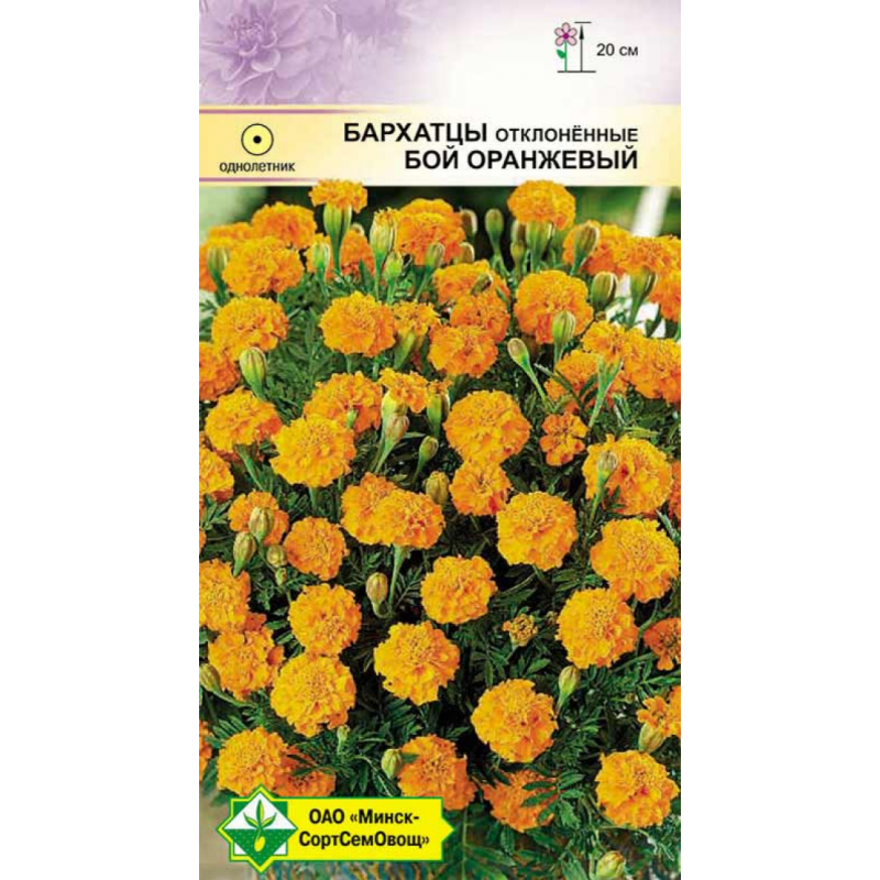 Однолетнее растение высотой около 20 см послужит украшением любого сада. Плотный компактный куст покрыт эффектными бархатными цветками. Соцветия 4-5 см в диаметре, махровые, хризантемовидные, оранжевой окраски. Прекрасны для оформления клумб, бордюров, балконов. Семена высевают на рассаду в конце марта-апреле или прямо в открытый грунт в мае. Рассаду высаживают, когда минует угроза заморозков.Качество семян соответствует ГОСТу 12260-81 и Постановлению МСХП РБ от 29.10.2015г. №37.