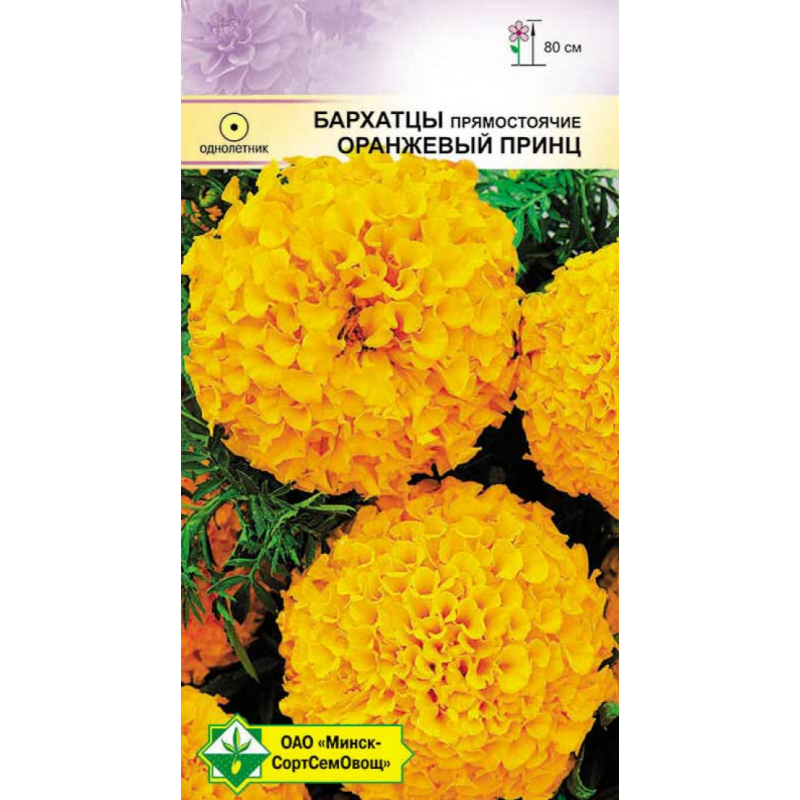 Однолетнее растение высотой около 80 см. Соцветия крупные, в диаметре 8-10 см, махровые, ярко-оранжевые. Цветут обильно до первых заморозков. Популярны для клумб, хороши в букетах. Семена высевают на рассаду в конце марта-апреле или прямо в открытый грунт в мае. Рассаду высаживают в открытый грунт в мае, когда минует угроза заморозков. Пересадку переносят хорошо. Размещают на солнечном месте или в полутени.Качество семян соответствует ГОСТу 12260-81 и Постановлению МСХП РБ от 29.10.2015г. №37.