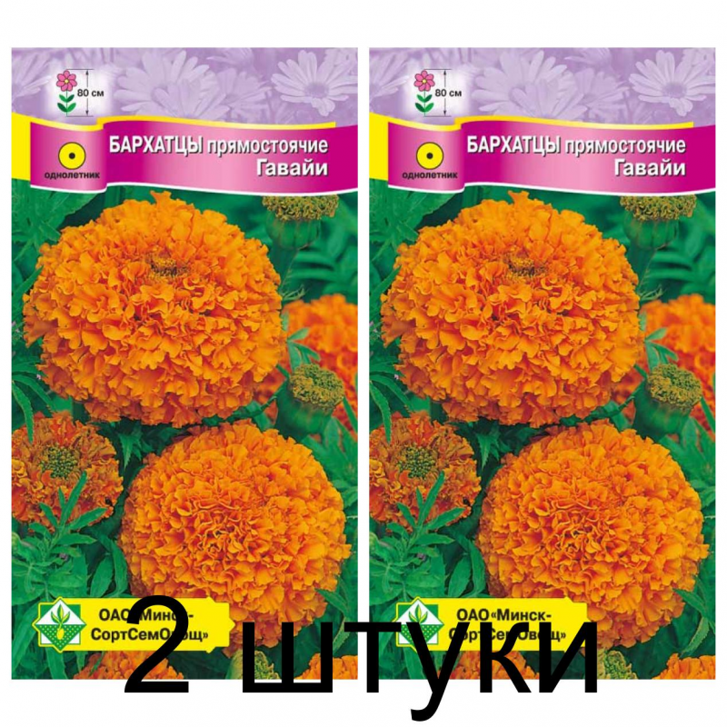 Однолетнее растение высотой около 80 см. Соцветия крупные, в диаметре 8-10 см, махровые, шарообразные, оранжевого цвета. Цветут обильно до первых заморозков. Для клумб, рабаток, садовых ваз, среза. Семена высевают на рассаду в конце марта-апреле или прямо в открытый грунт в мае. Рассаду высаживают в грунт в мае, когда минует угроза заморозков. Пересадку переносят хорошо. Размещают на солнечном месте или в полутени.Качество семян соответствует ГОСТу 12260-81 и Постановлению МСХП РБ от 29.10.2015г. №37.