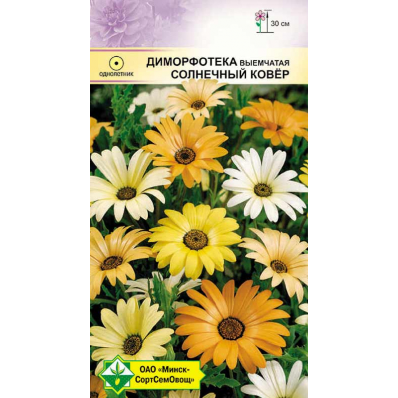 Однолетнее растение высотой около 30 см. Соцветия ромашковидные, в диаметре 5-7 см, кремовых, желтых и оранжевых тонов. В пасмурную погоду и на ночь соцветия закрываются. Цветет обильно и продолжительно. Для клумб, каменистых горок, балконных ящиков. Выращивают посевом семян прямо в открытый грунт на постоянное место. Предпочитает легкую небогатую почву на солнечном месте.Качество семян соответствует ГОСТу 12260-81 и Постановлению МСХП РБ от 29.10.2015г. №37.