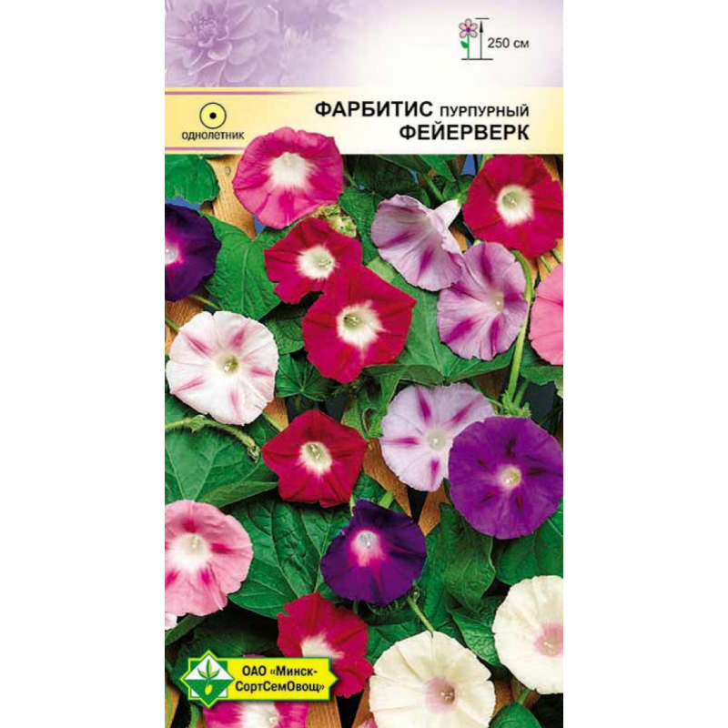 Однолетнее вьющееся растение высотой до 2,5 м. Одна из красивейших садовых лиан. Цветки воронковидные, белых, розовых, голубых, лиловых, красных тонов, в диаметре 5-7 см. Цветение обильное и длительное. Идеально подходит для любого вертикального озеленения. Семена высевают в открытый грунт в конце апреля-мае. Пересаживают только с комом земли. Предпочитает рыхлую питательную почву и защищенное от ветра солнечное место.Качество семян соответствует ГОСТу 12260-81 и Постановлению МСХП РБ от 29.10.2015г. №37.