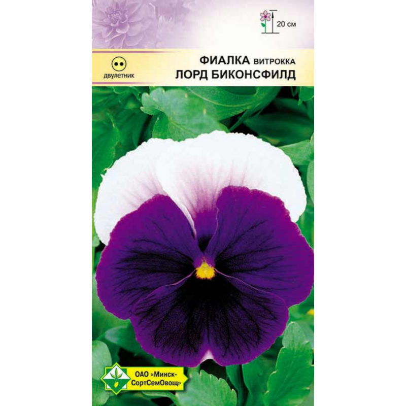 Используется как двулетнее растение. Кустики высотой до 20 см, компактные. Цветки крупные, 5-5,5 см в диаметре, округлые, с бело-голубоватыми верхними и темно-фиолетовыми нижними лепестками. Цветет длительно с ранней весны. Одновременно открыто 12-15 цветков. Рекомендуется для клумб, балконов, цветочных ваз. Семена высевают в июне-начале июля. На постоянное место пересаживают в августе или весной. Переносит полутень. Зимует хорошо.Качество семян соответствует ГОСТу 12260-81 и Постановлению МСХП РБ от 29.10.2015г. №37.