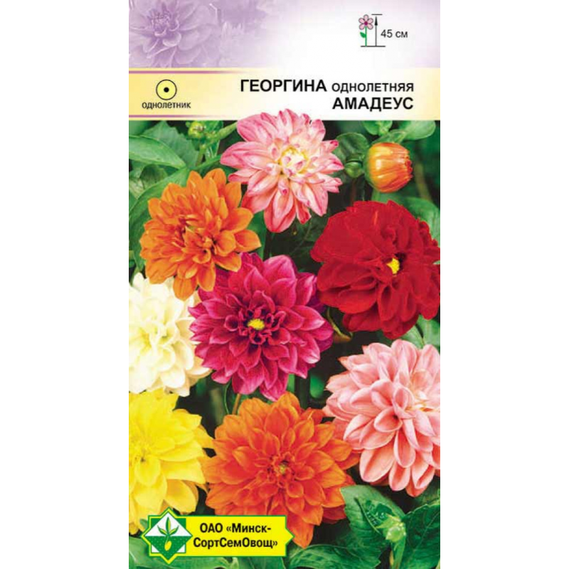 Один из немногих сортов махровых георгин, выращиваемых из семян. Однолетнее компактное растение высотой 40-45 см. Соцветия невероятно ярких и разнообразных окрасок, в диаметре 7-10 см. Обильно цветет с июля до заморозков. Для балконных ящиков, цветников, бордюров. Семена на рассаду высевают в начале апреля. Рассаду высаживают после окончания заморозков. Осенью клубни можно выкопать и сохранить до весны.Качество семян соответствует ГОСТу 12260-81 и Постановлению МСХП РБ от 29.10.2015г. №37.