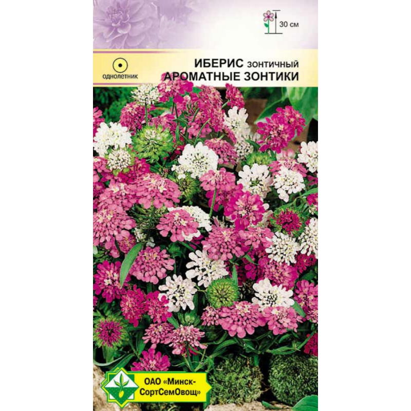 Смесь колеров. Однолетнее неприхотливое обильноцветущее растение высотой около 30 см. Цветки с прекрасным ароматом, белые, розовые, сиреневые, пурпурные, собраны в зонтиковидные кисти. Медонос. Великолепно подходит для оформления бордюров, украшения дорожек, альпийских горок. Семена высевают в открытый грунтв конце апреля-начале мая. Цветет в июле-августе. Для продления цветения необходимо удалять отцветающие соцветия.Качество семян соответствует ГОСТу 12260-81 и Постановлению МСХП РБ от 29.10.2015г. №37.