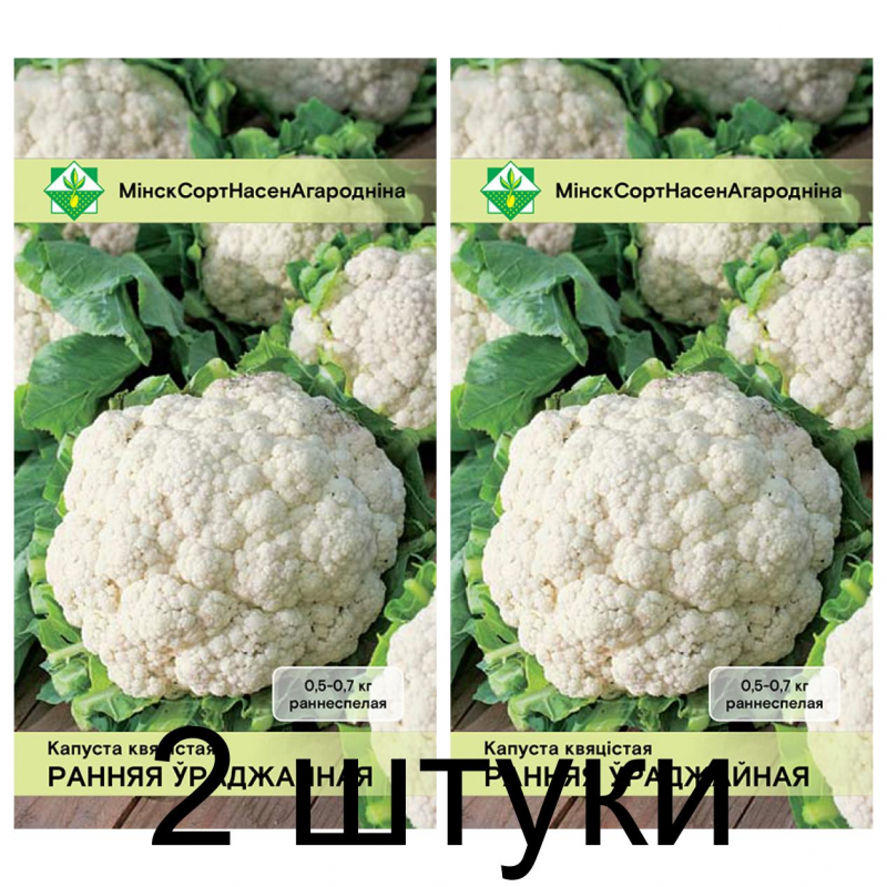 Раннеспелый сорт. Период от высадки рассады до начала уборки 55-65 дней. Посадка производится 30-35-дневной рассадой. Головки-соцветия округло-плоские, белые, плотные, массой 0,5-0,7 кг. Вкусовые и диетические качества высокие. Универсального назначения. Для возделывания в открытом и защищенном грунте. Устойчив к неблагоприятным погодным условиям. Качество семян проверено и соответствует Постановлению МСХиП РБ №37 от 29.10.2015г.