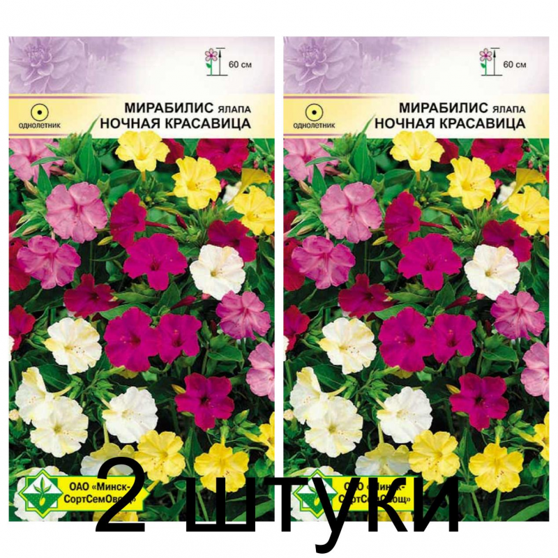 Смесь колеров. Привлекательное однолетнее растение высотой до 60 см. Цветки воронковидные, белой, желтой, малиновой, пурпурной окраски, в диаметре 5-6 см, с приятным ароматом, открываются с вечера до утра и в пасмурную погоду. Прекрасно подходит для групповых посадок на газоне, клумб, рабаток, однолетних живых изгородей. Растение солнцелюбивое. Предпочитает произвесткованные суглинистые почвы.Качество семян соответствует ГОСТу 12260-81 и Постановлению МСХП РБ от 29.10.2015г. №37.