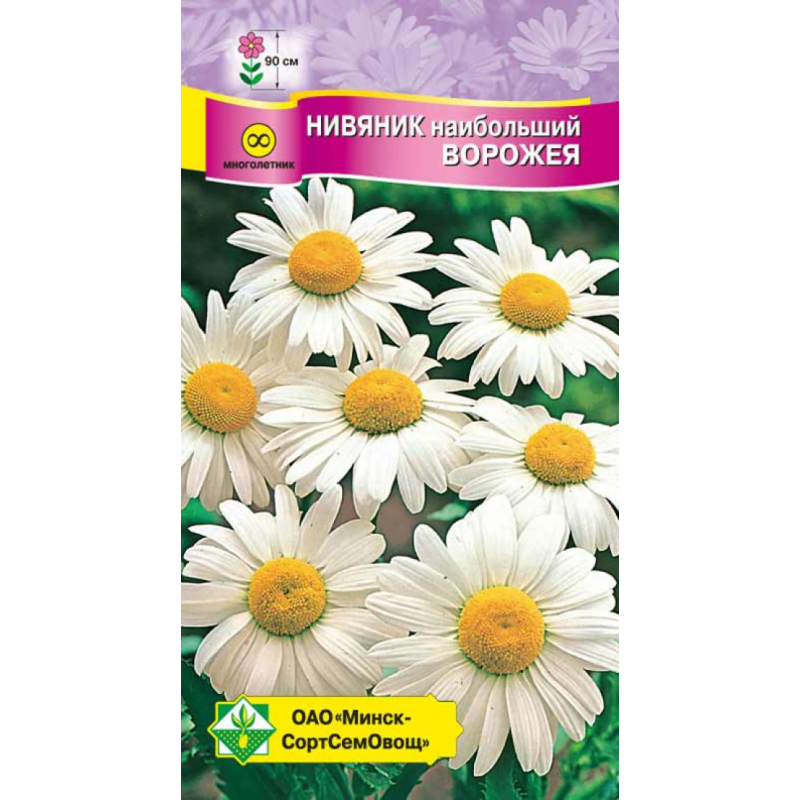 Многолетнее растение высотой около 90 см. Привлекает крупными – в диаметре 7-9 см, элегантными снежно-белыми цветками с желтой серединой. Прекрасно подходит для посадки группами в цветники, на газоны, рядами на рабатки, срезки в букеты. Выращивают посевом семян в конце апреля-мае (с посадкой на место следующей весной) или делением куста. Предпочитает плодородные некислые почвы с достаточным увлажнением. Лучше растет на солнце.Качество семян соответствует ГОСТу 12420-81 и Постановлению МСХП РБ от 29.10.2015г. №37.