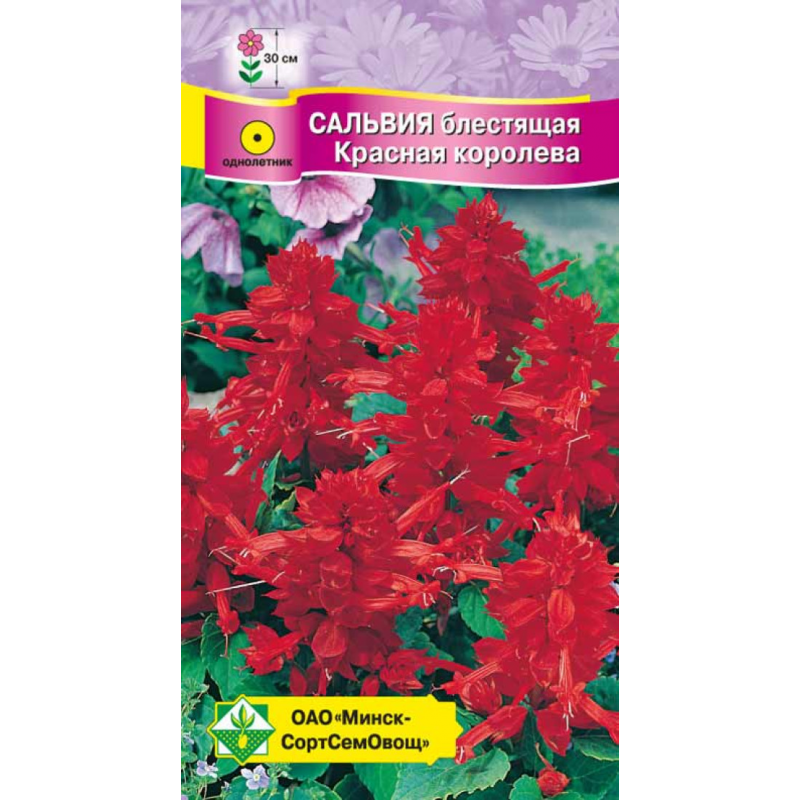 Однолетнее растение высотой 25-30 см. Огненно-красные соцветия-кисти словно парят над ярко-зеленой ажурной листвой, придавая неповторимое очарование клумбам, рабаткам, делают сальвию незаменимой участницей парада цветов в саду. Цветет обильно и продолжительно. Семена на рассаду высевают в марте. В открытый грунт рассаду высаживают, когда минует угроза заморозков. Светолюбива, но выносит и легкую полутень.Качество семян соответствует ГОСТу 12260-81 и Постановлению МСХП РБ от 29.10.2015г. №37.