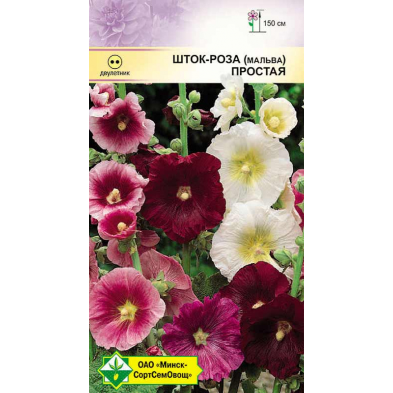 Двулетнее растение высотой до 1,5 м. Цветки разнообразной окраски, простые, в диаметре 8-10 см, собраны в колосовидные соцветия. Для декорирования оград и зданий, прекрасно смотрится на заднем плане цветника. В букете сохраняется до 10 дней. Семена высевают в конце мая-начале июня. На постоянное место пересаживают с комом земли в конце августа. Хорошо зимует при легком укрытии. Дает самосев.Качество семян соответствует ГОСТу 12260-81 и Постановлению МСХП РБ от 29.10.2015г. №37.