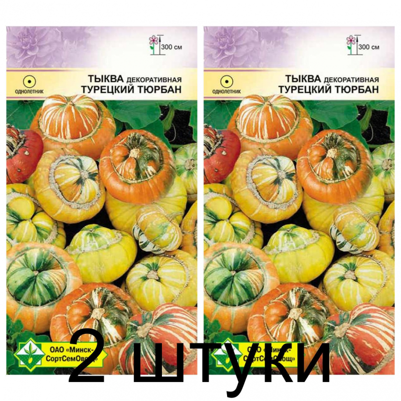 Декоративное однолетнее растение с оригинальными плодами разнообразной окраски, напоминающими восточный головной убор. Длина стебля до 3 м. Плоды появляются в середине июля и висят до заморозков, несъедобны. Широко используется для вертикального озеленения. А зимой тыковки украсят интерьеры и послужат великолепным материалом для поделок. Семена высевают непосредственно в открытый грунт, когда минует угроза заморозков. Предпочитает солнечное место и плодородную почву.Качество семян соответствует ГОСТу 12260-81 и Постановлению МСХП РБ от 29.10.2015г. №37.