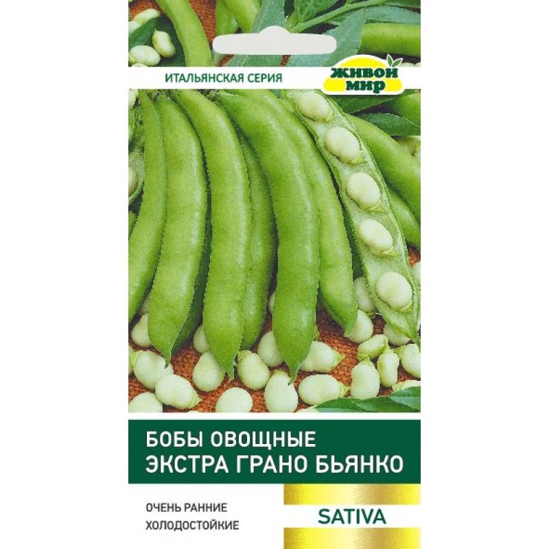 Бобы овощные Экстра грано бьянко (Sativa) – ультраранний холодостойкий сорт с нежными сахарными бобами без пергаментного слоя. Идеальный выбор для регионов с прохладным климатом и ранних посевов.