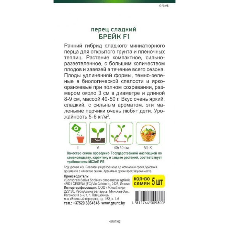 Ранний гибрид сладкого миниатюрного перца для открытого грунта и пленочных теплиц.