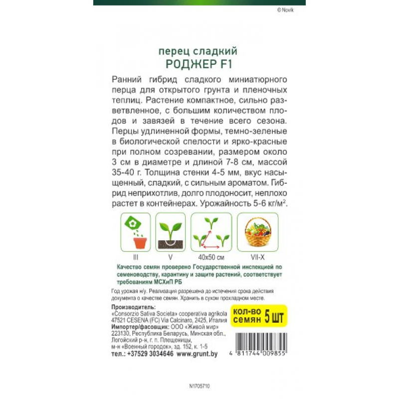 Ранний гибрид сладкого миниатюрного перца для открытого грунта и пленочных теплиц.