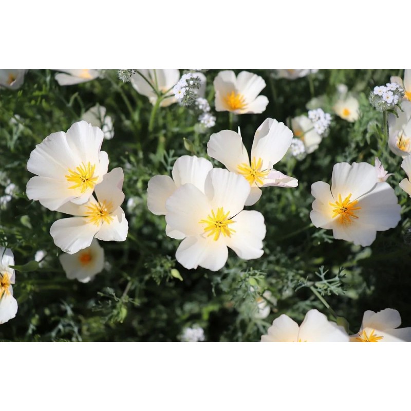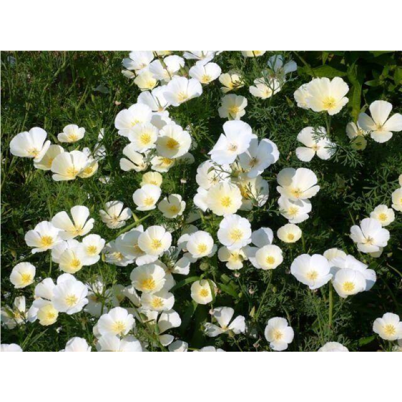 Один из самых очаровательных и неприхотливых однолетников. Образует ажурное переплетение из многочисленных побегов с тонко-рассеченными сизоватыми листьями и светящимися белоснежными чашечками цветков диаметром 5 см. Высота растений 35 см. Эшшольция придает легкость и изящность цветникам, клумбам, каменистым горкам, мавританским газонам.