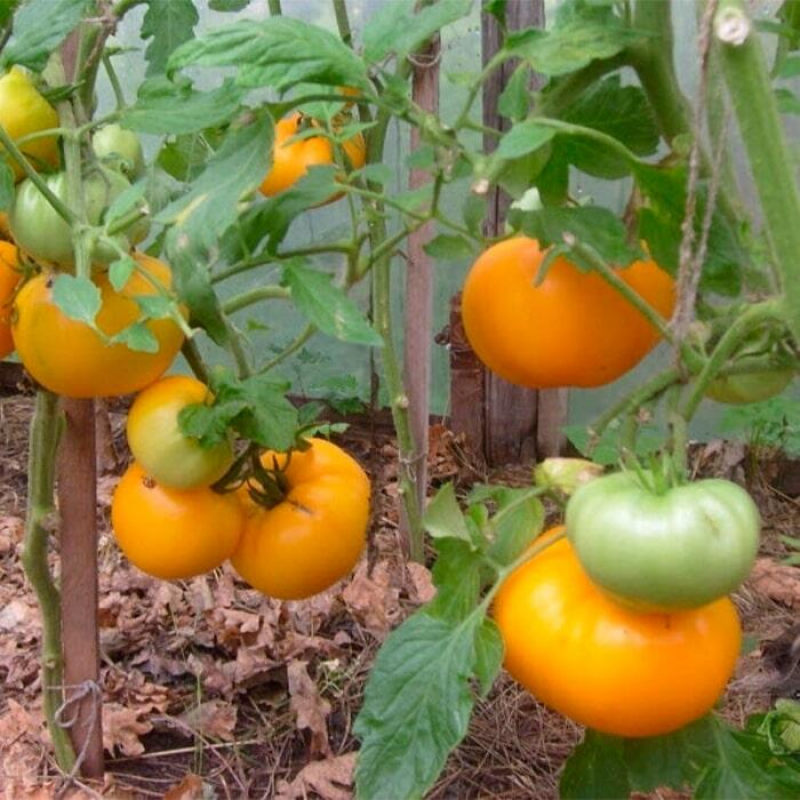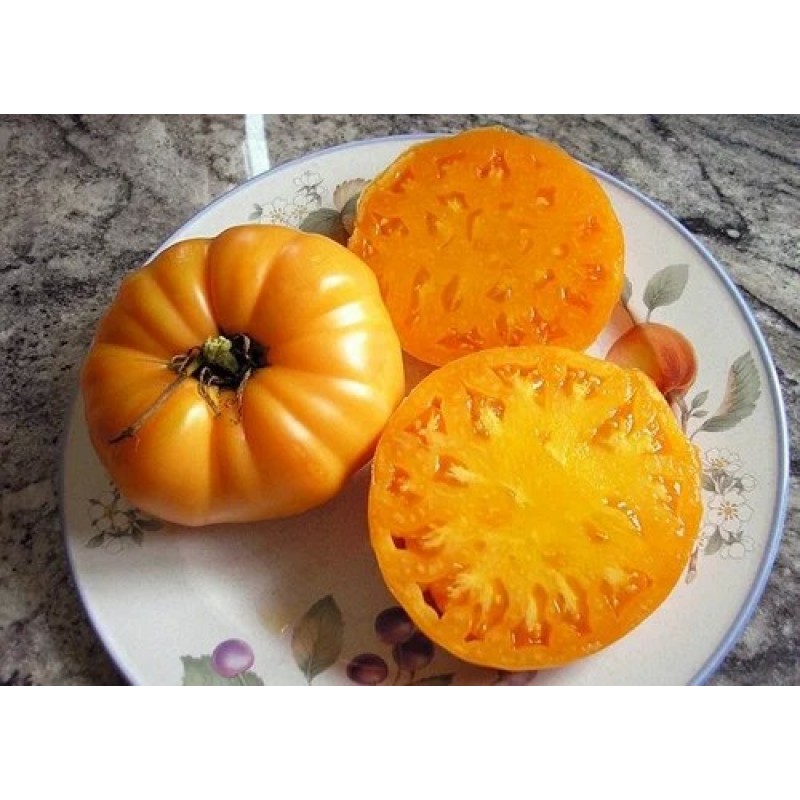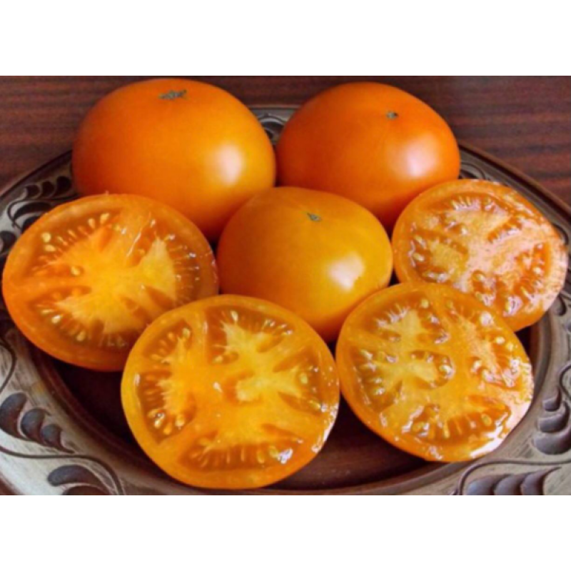 Среднеспелый (110-115 дней) сорт для выращивания в открытом грунте и необогреваемых теплицах. Растение детерминантное, высотой 60-80 см, сильнооблиственное, слабоветвистое. Плоды плоскоокруглые, среднеребристые, оранжевого цвета, массой 240 г. Вкусовые качества свежих плодов отличные. Подходит для людей с аллергией на томаты: не вызывает реакции. Рекомендуется для потребления в свежем виде и для изготовления соусов.