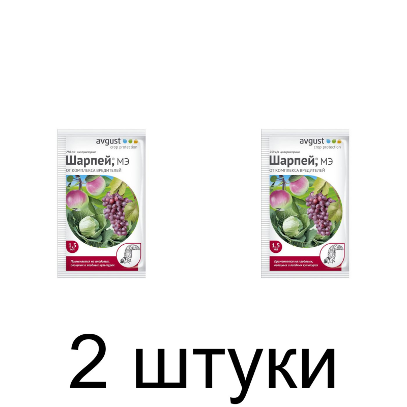 Инсектицид контактно-кишечного действия для борьбы с широким спектром вредителей на овощных, плодовых культурах и винограде. Шарпей обладает быстрым действием, поражает нервную систему вредных насекомых. В течение 10 - 15 минут после обработки они перестают передвигаться, а затем за 1,5 - 2 ч гибнут в результате общего паралича всех органов. В зависимости от вида вредителя, стадии его развития и погодных условий период защитного действия составляет от 7 до 14 дней. Таким образом, в течение 2 недель ваши растения защищены от насекомых, которые могут отродиться из яйцекладок, переместиться с соседних участков или с ваших необработанных культур. Применять Шарпей нужно согласно инструкции (см. вкладку Регламенты применения). Как и любой другой инсектицид, приготовление рабочего раствора производится путём разведения концентрата сначала в небольшом количестве воды (до 1 литра), а затем добавления воды до необходимого количества. Рабочий раствор хранению не подлежит, то есть использовать его нужно сразу. Опрыскивание проводится по листьям и стеблям в безветренную погоду, желательно в утренние (до 10:00) и вечерние (после 18:00) часы – чтобы избежать солнечных ожогов на растениях. После обработки обычно должно пройти некоторое время до сбора урожая – в регламенте применения этот период называется «срок ожидания» и указывается в днях. Преимущества: оказывает быстрое действие на вредителей – «нокдаун-эффект»; экономичен благодаря низким нормам расхода; способен нарушать откладку яиц у взрослых насекомых и питание личинок; имеет прогрессивную препаративную форму (микроэмульсия), устойчивую к воздействию высоких температур.