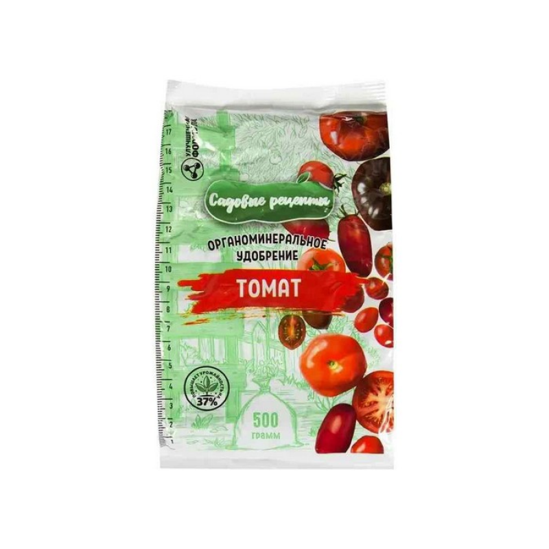 Удобрение для томатов «Садовые рецепты» — органоминеральный препарат, повышающий плодородие грунта, стимулирующий рост и обеспечивающий правильное развитие растений. Фасуется в мешки по 500 г. Особенности Увеличивает урожайность томатов (до 37%), обладает продолжительным действием. Может использоваться при выращивании перцев, баклажанов. Нормы внесения на 1 м. кв. : для подготовки почв — от 25 до 50 г, для подкормки — не более 30 г. Для активации компонентов препарата землю следует хорошо полить.