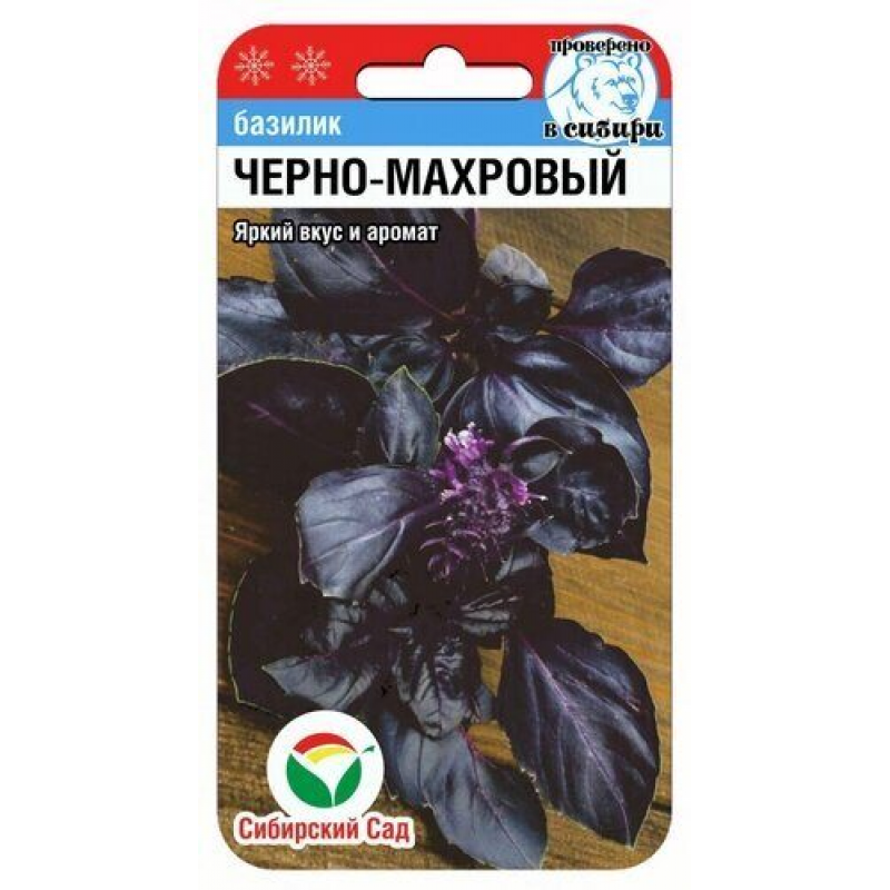 Базилик Черно махровый 0,5 г (Семена Сиб Сад) — сорт с насыщенным вкусом и пряным ароматом, подходящий для кулинарии и декоративного оформления. От всходов до сбора урожая проходит 50–70 дней. Листья темно-фиолетовые, почти черные, с бархатистой пузырчатой поверхностью, что придает растению необычный эстетичный вид. Куст компактный, высотой 30–40 см, густо покрыт листвой.