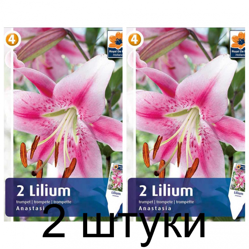 Лилия Anastasia - шикарный сорт трубчатых лилий. Цветки нежно-розового цвета (в холодную погоду окрас насыщенней) с малиновым крапом, края лепестков белого цвета, волнистые. Цветки шестилепестковые, очень крупные, до 20-25 см в диаметре. Листья зеленые.Высота растения - 180 см. Цветет в мае-октябре.Сорт прекрасно подойдет для клумб, одиночных и групповых посадок, отлично соседствует с другими луковичными растениями, а также различными однолетними и многолетними культурами. Идеален для срезки, поскольку цветы долго сохраняют свежесть.