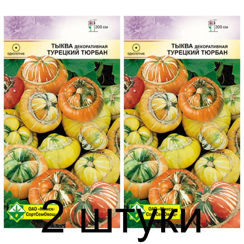 Декоративное однолетнее растение с оригинальными плодами разнообразной окраски, напоминающими восточный головной убор. Длина стебля до 3 м. Плоды появляются в середине июля и висят до заморозков, несъедобны. Широко используется для вертикального озеленения. А зимой тыковки украсят интерьеры и послужат великолепным материалом для поделок. Семена высевают непосредственно в открытый грунт, когда минует угроза заморозков. Предпочитает солнечное место и плодородную почву.Качество семян соответствует ГОСТу 12260-81 и Постановлению МСХП РБ от 29.10.2015г. №37.