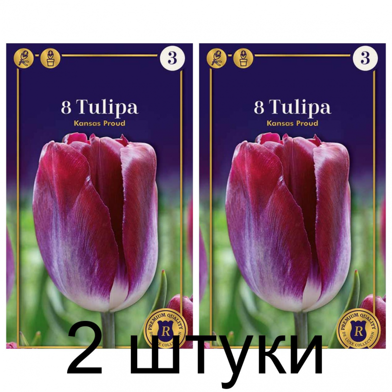 Тюльпаны Kansas Proud - эффектный сорт группы Триумф лилово-чернильной окраски. Снизу лепестки окрашены в белый цвет, а к середине добавляются фиолетовые краски, которые к верху бутона сгущаются в чернильные. Цветок бокаловидный, крупный, до 10-12 см в высоту.Высота растения - около 40-50 см. Цветет в апреле-мае, продолжительность цветения высокая.Данный сорт украсит сад, клумбу или живую цветочную композицию, а также отлично подойдет для создания букетов благодаря высокой устойчивости. Устойчив к заболеваниям и погодным условиям.