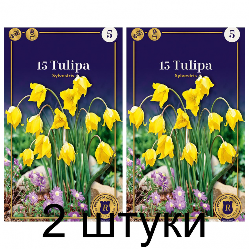 Тюльпаны Sylvestris - также известный как тюльпан лесной, является дикорастущим растением, которое относится к семейству лилейных. Для данного вида характерно наличие одного или нескольких соцветий на высокой тонкой цветочной стрелке. Цветок ярко-желтый цвет, открытой формы с раскрытыми лепестками. Бутоны 6-10 см в диаметре. Высота растения - около 30 см. Цветет в апреле-мае, продолжительность цветения около 20 дней.