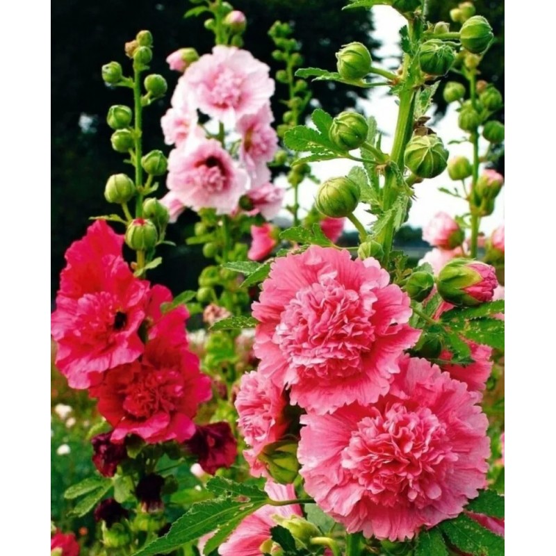 Популярные садовые великаны. Растение высотой до 150 см. Светолюбиво, засухоустойчиво. Крупные (до 14 см в диаметре), густомахровые, яркие цветки собраны в гигантские соцветия – кисти и сплошь покрывают высокие, мощные цветоносы. Листья крупные, лопастные, по краю зубчатые, шероховато-ворсистые. Шток-розу используют для создания небольших групп на газоне, декорирования изгородей, стен и на срезку. Срезать растения лучше в стадии нераспустившегося бутона.
