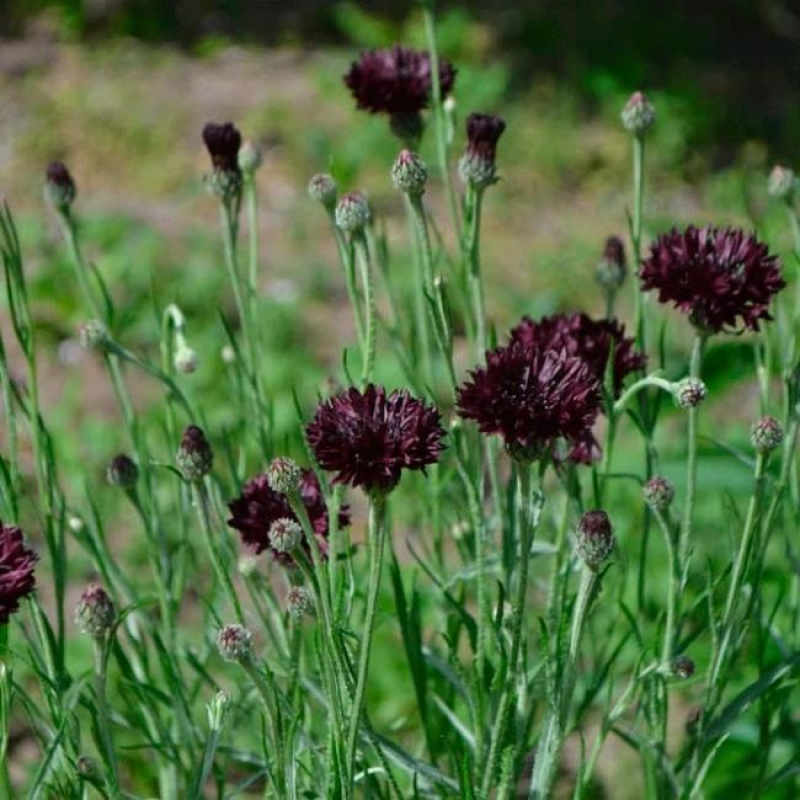 Любимый цветок многих народов мира. Растения высотой около 80 см. Соцветия махровые шарообразные пурпурно-черной окраски. Неприхотлив в выращивании. Цветет с июня по сентябрь. Прекрасно подойдет для высоких бордюров, цветников в пейзажном стиле. Незаменим для создания "полевого" букета!