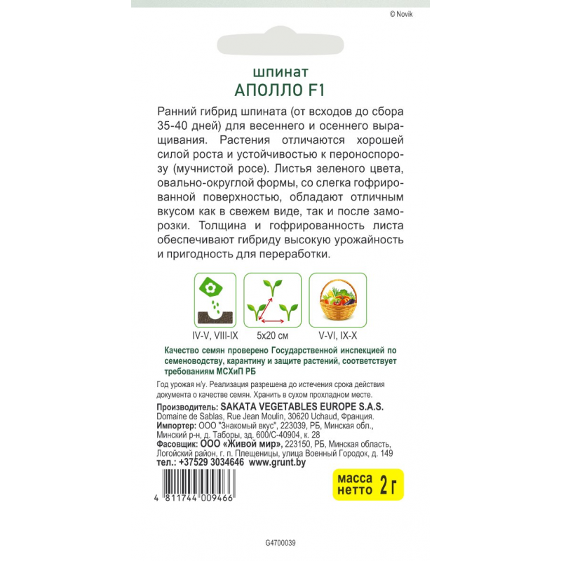 Ранний гибрид шпината (от всходов до сбора 35-40 дней) для весеннего и осеннего выращивания.