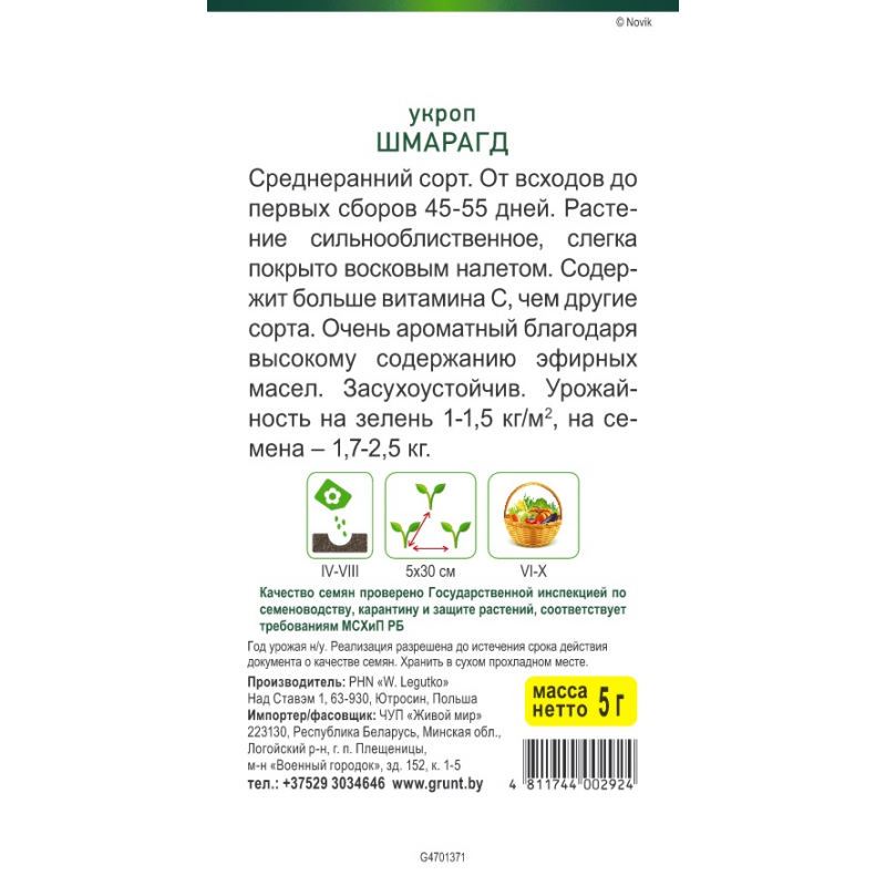 - Тип:Семена зелени