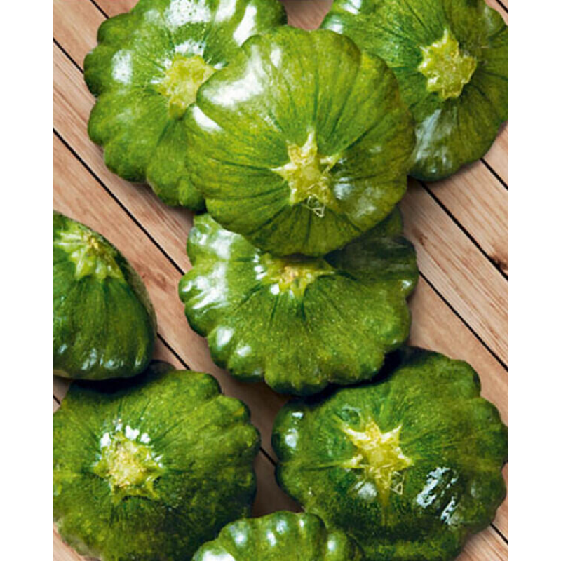 Среднеспелый сорт. Период от всходов до первого сбора 50-55 дней. Растение кустового типа. Плоды дисковидной формы, с зубчатыми краями, в технической спелости ярко-зеленого, в биологической темно-зеленого цвета. Мякоть плотная, белая, отличного вкуса. Характеризуется высоким урожаем мелких плодов, пригодных для маринования. Диетический продукт. Рекомендуется для приготовления различных блюд, консерваций и маринования. Качество семян проверено и соответствует Постановлению МСХиП РБ №37 от 29.10.2015г.
