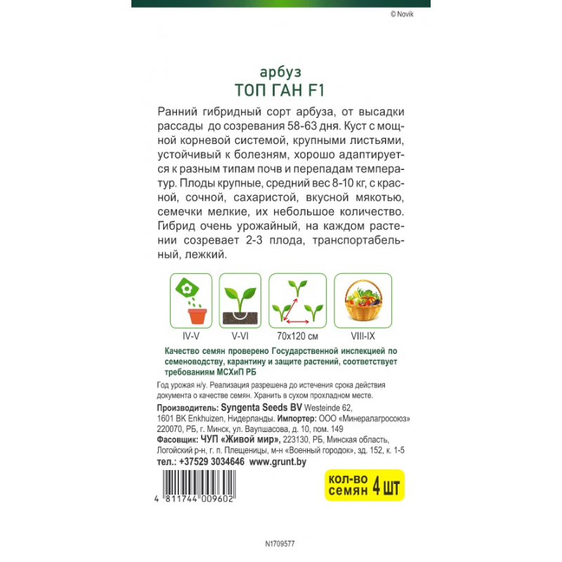 - Вид овощей/ягод:арбуз
