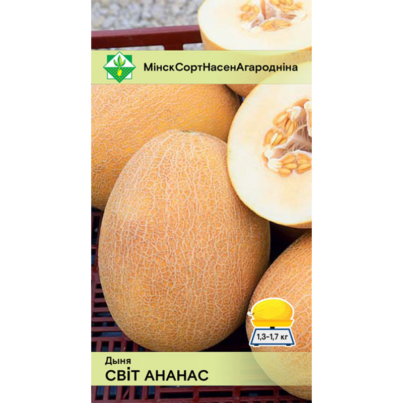 Среднеспелый сорт. Период от всходов до первого сбора 90-95 дней. Растение средней силы роста. Плоды овальные, желто-оранжевые, покрыты нежной сеткой, с небольшой семенной камерой, массой 1,3-1,7 кг, устойчивы к растрескиванию. Мякоть кремовая, с нежным ароматом, маслянистая, отличного вкуса. Выращивают через 25-30-дневную рассаду, как в открытом, так и защищенном грунте. Качество семян проверено и соответствует Постановлению МСХиП РБ №37 от 29.10.2015г.